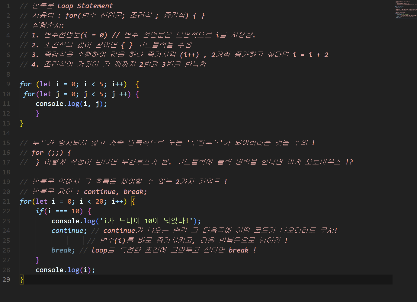 MDN for : https://developer.mozilla.org/ko/docs/Web/JavaScript/Reference/Statements/for